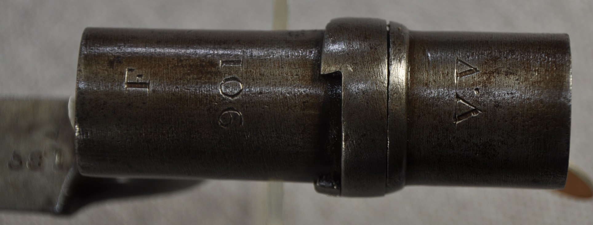 Unknown manufacturer but in erxcellent condition without rust or pitting. Bayonet is marked F901 over VV and fits the my D series P1853 rifle with ease.