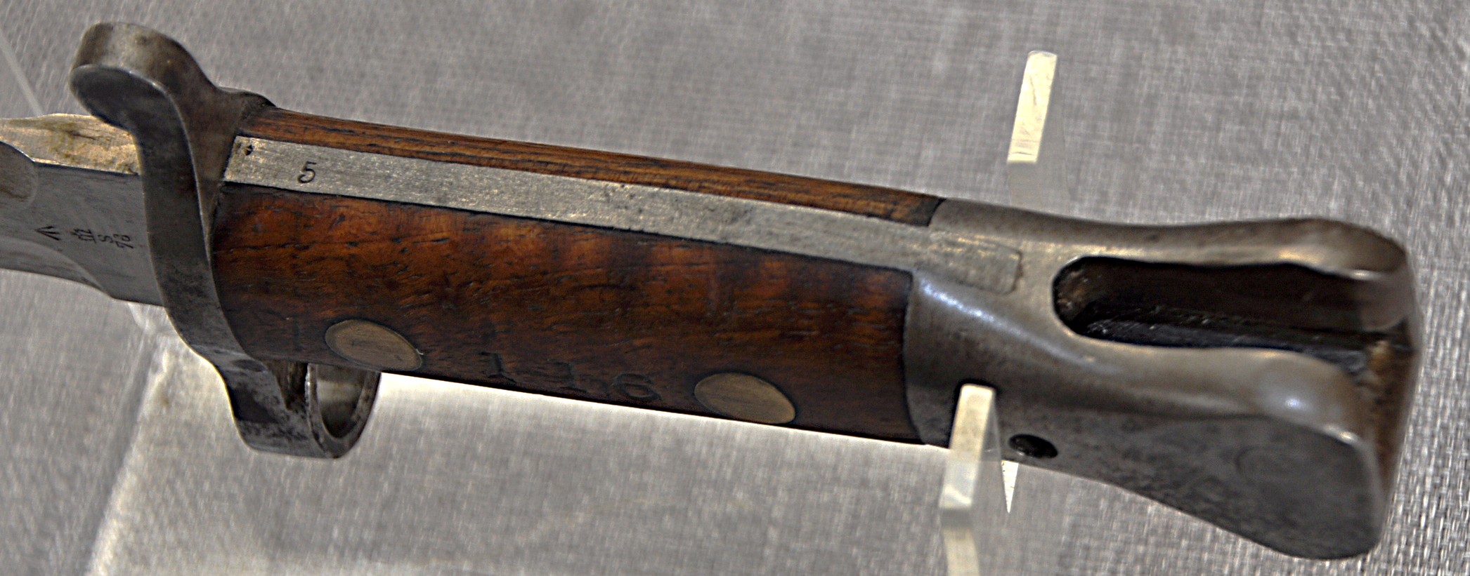 There are inspection marks stamped to the top of the blade and a “5” to the underside of the tang.
