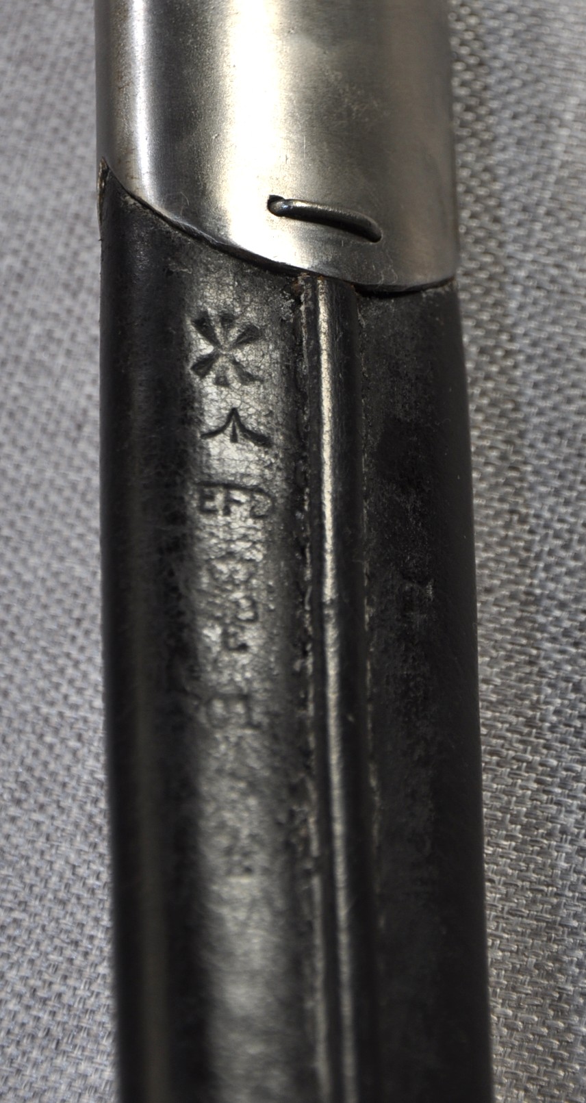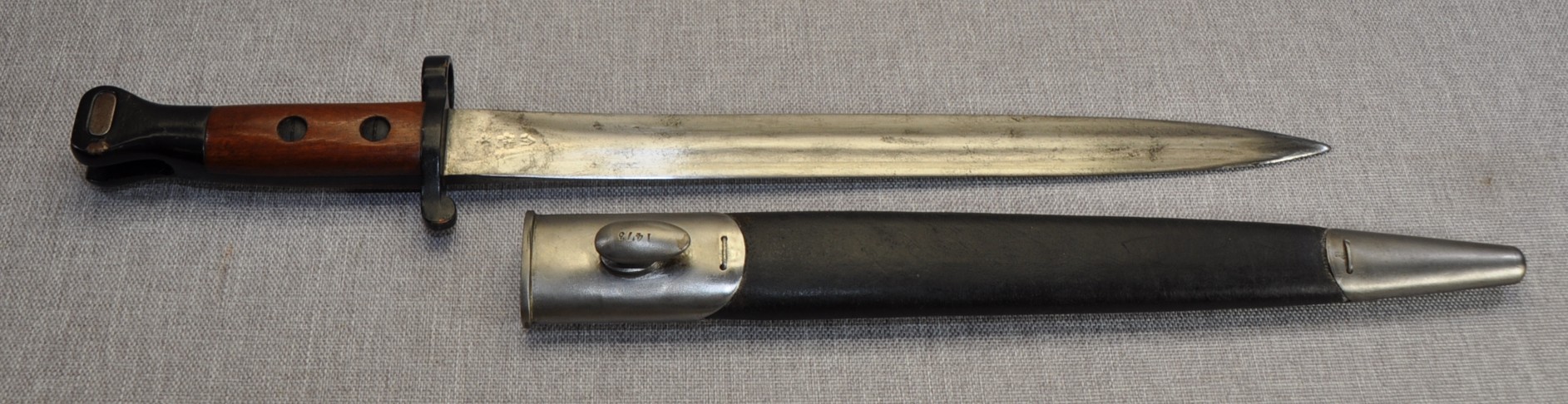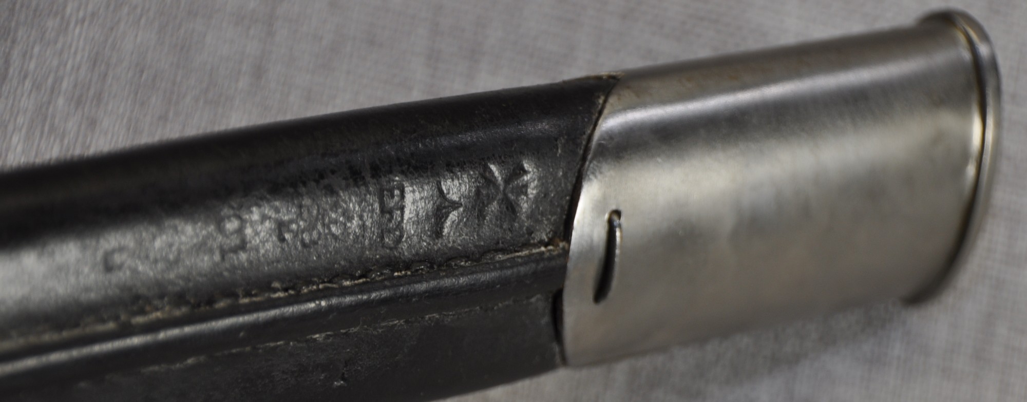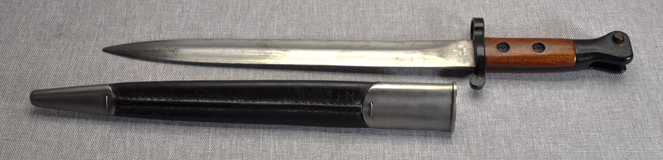 Scabbard has Enfield proof and acceptance marks with an issue date of 1901. Australia serial number stamped to frog stud and D^D stamped to the locket mouth.