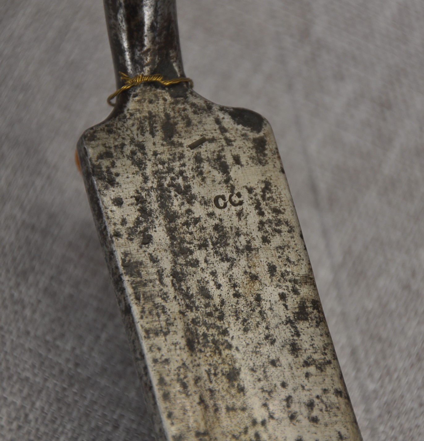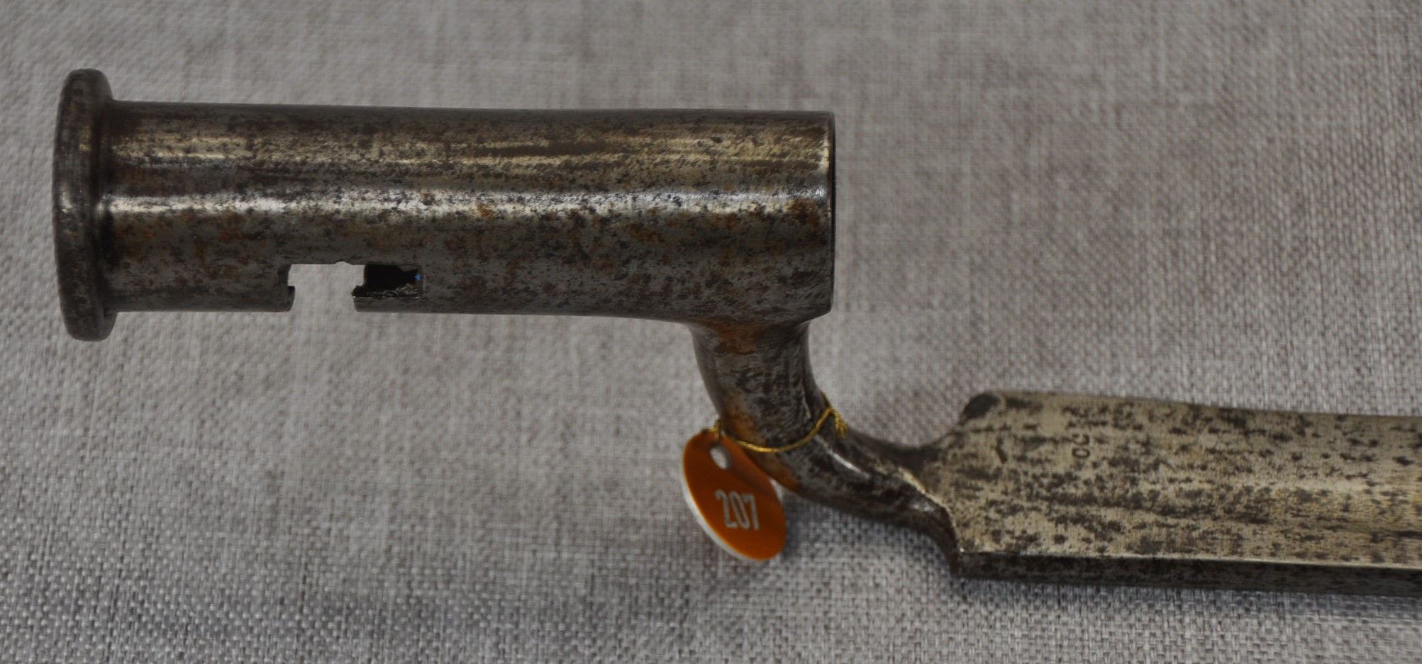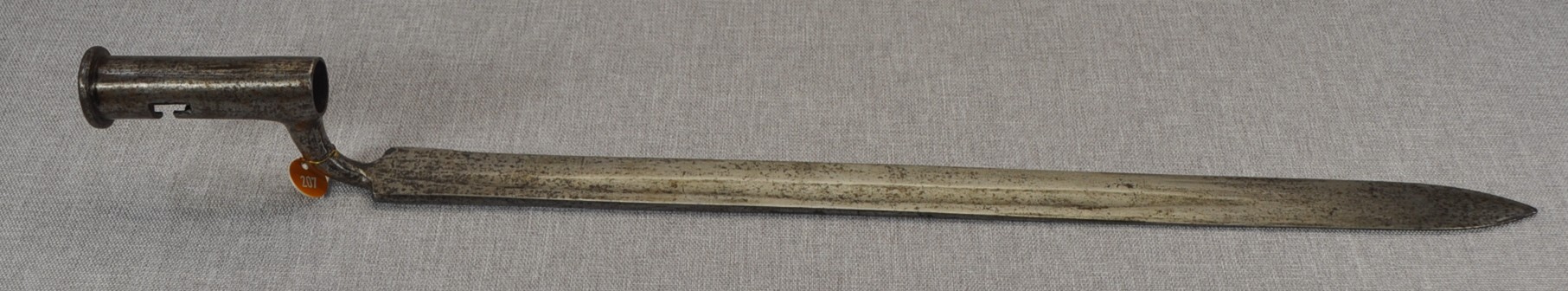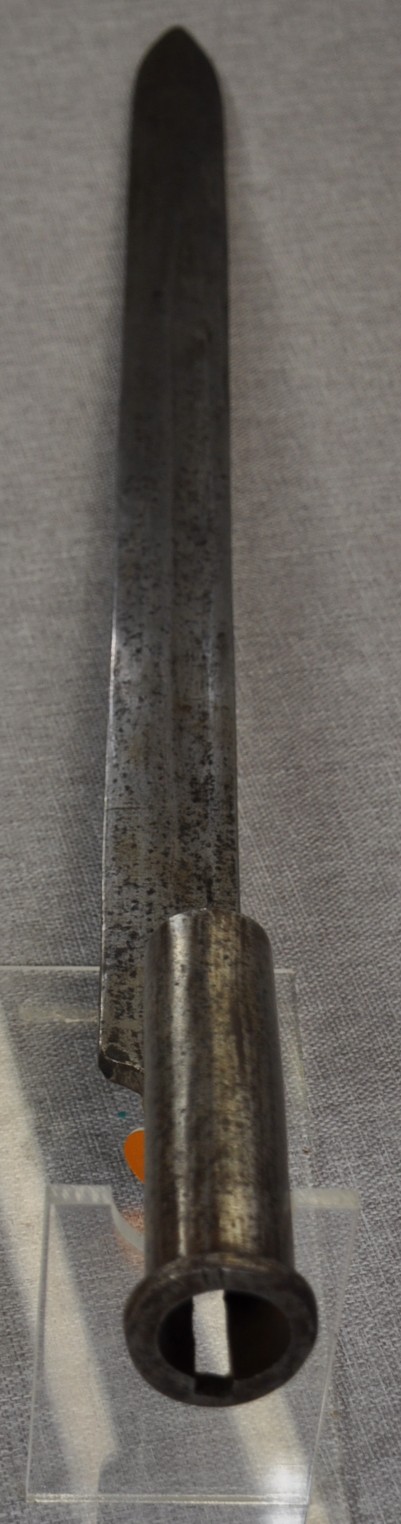 Volunteer Sword/Socket Bayonet. The bayonet has no markers markings or ordnance markings. The only marking is “C C” stamped to the ricasso.